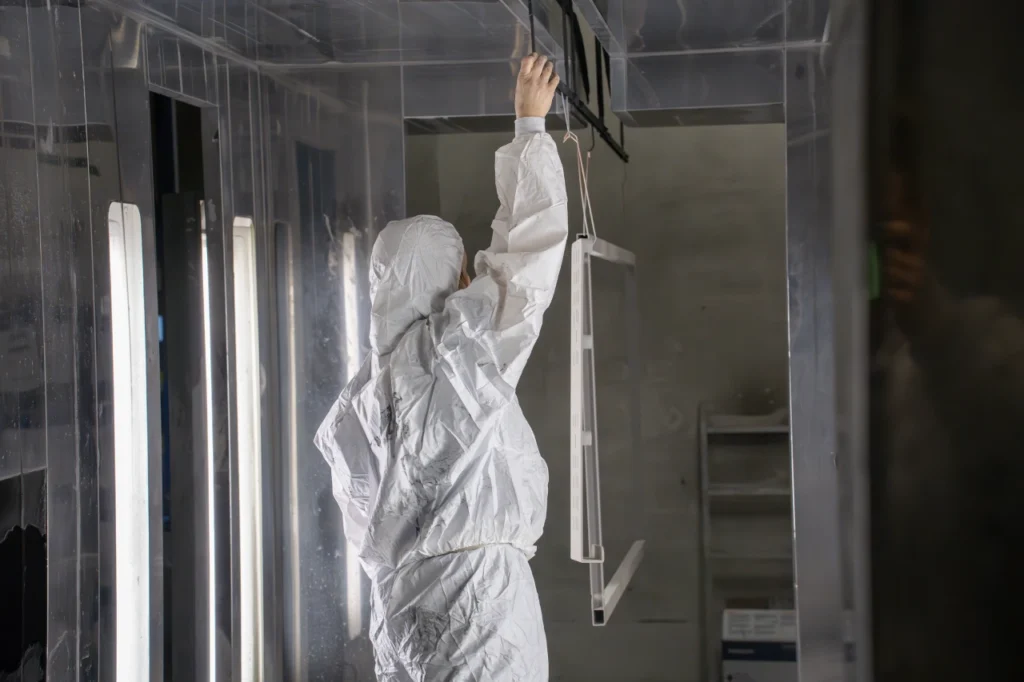 Práškové lakování kovových dílů v moderní automatizované lince s podvěsnými dopravníky, zahrnující odmašťování, sušení, nanášení barvy a vytvrzování v plynové peci. Dle vzorníku barev RAL a NCS.